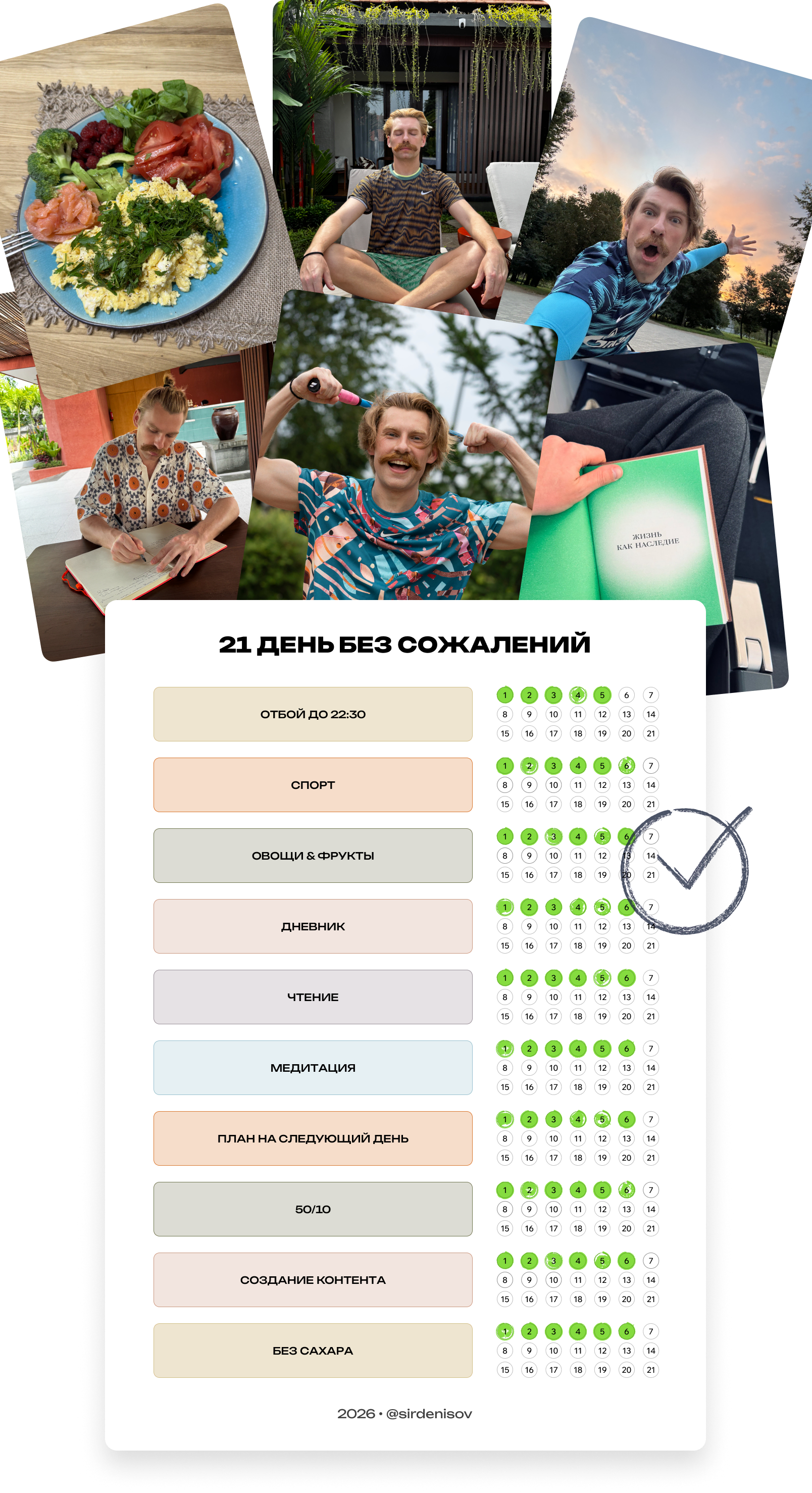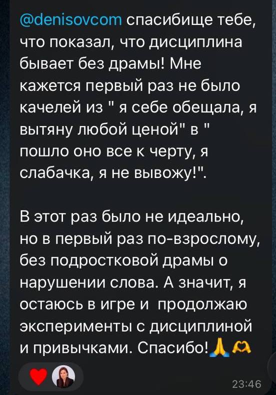 Но важно помнить, что дисциплина — это не про 100% выполнение всех привычек без пропусков. А способность возвращаться и не сдаваться, даже если произошли пропуски.