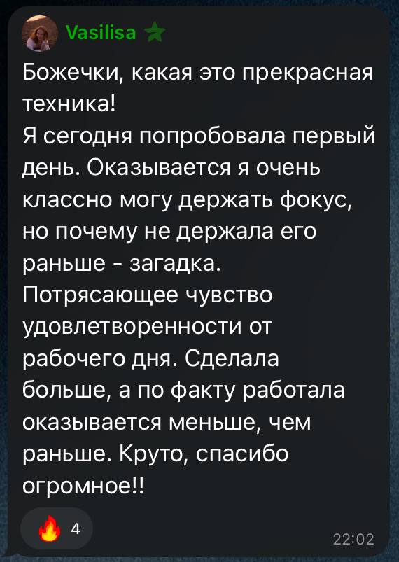 Каждую неделю мы встречаемся в Zoom: ставим таймер и за два сета продуктивно завершаем дела, которые откладывали