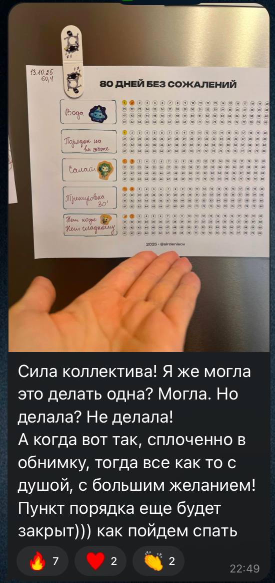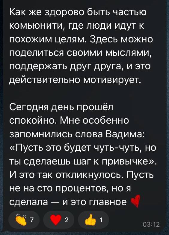 Цель клуба — создать атмосферу, где мы будем поддерживать друг друга в стремлении следовать привычкам.