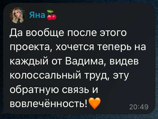 Вадим будет присутствовать в чате со всеми участниками и будет отвечать на все вопросы, где потребуется его участие. Если вдруг Вы не получили ответа, просто продублируйте свой вопрос и отметьте Вадима.
